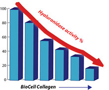 Research suggests that the ingestion of BioCell Collagen® stimulates chondrocytes (cartilage producing cells) and fibroblasts (skin producing cells) in the renewal of cartilage and skin. Moreover, BioCell Collagen® was shown to have a concentration-dependent inhibition of hyaluronidase. This enzyme degrades hyaluronic acid, which can contribute to signs of aging on the skin and loss of viscoelasticity of joint synovial fluid. BioCell Collagen® also attenuates deleterious changes in biomarkers including creatine kinase, lactate dehydrogenase, and C-reactive protein adding further clues into its mechanism of action.*