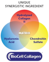 BioCell Collagen® is comprised of a unique matrix of primarily collagen type II peptides, chondroitin sulfate and HA, mirroring components of human body.